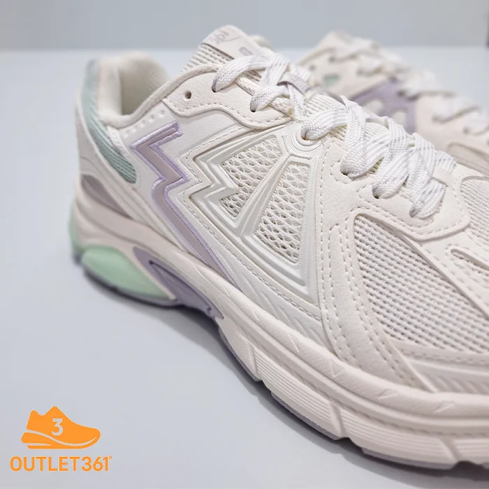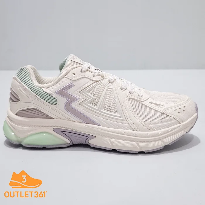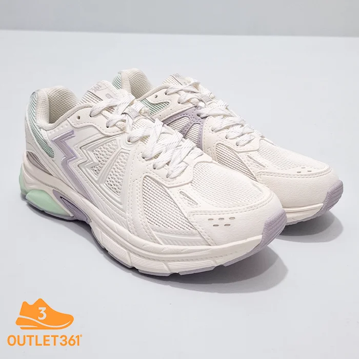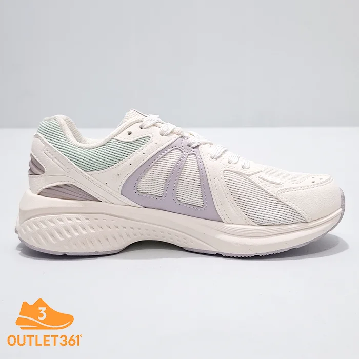کفش با رنگ سفید و جزئیات سبز و بنفش ملایم طراحی شده و ظاهری مینیمال و زنانه دارد. همین ترکیب رنگ باعث میشود بهراحتی با انواع لباسهای اسپرت و حتی استایل روزمره هماهنگ شود. طراحی خطوط برجسته در کناره کفش با لوگوی بزرگ 361° جلوهای مدرن و چشمنواز به آن بخشیده است.