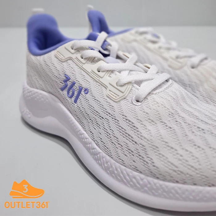 این مدل با ترکیب رنگ سفید و بنفش ملایم طراحی شده که ظاهری تمیز، زنانه و اسپرت به کفش میبخشد. فرم کشیده و مینیمال رویه در کنار لوگوی 361° در کناره کفش، حس یک کفش رانینگ حرفهای و امروزی را منتقل میکند. طراحی این کفش بهگونهای است که علاوه بر تمرین، برای استفاده روزمره اسپرت نیز قابل استفاده است.
