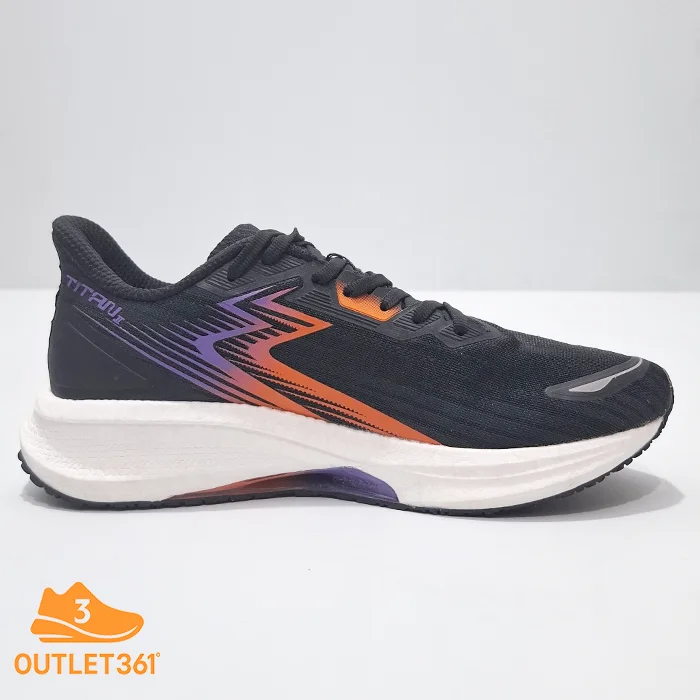 کفش رانینگ 361 درجه کد 572332210-9 یک گزینه ایدهآل برای دوندگان حرفهای و نیمهحرفهای است که به دنبال ترکیبی از سبکی، بازگشت انرژی بالا و راحتی بلندمدت هستند. رویه این کفش از مش مهندسیشده با تنفسپذیری عالی ساخته شده. طراحی چشمنواز با ترکیب رنگهای مشکی، نارنجی و بنفش به این مدل ظاهری اسپرت و مدرن میدهد که مناسب استایل روزمره هم می باشد.